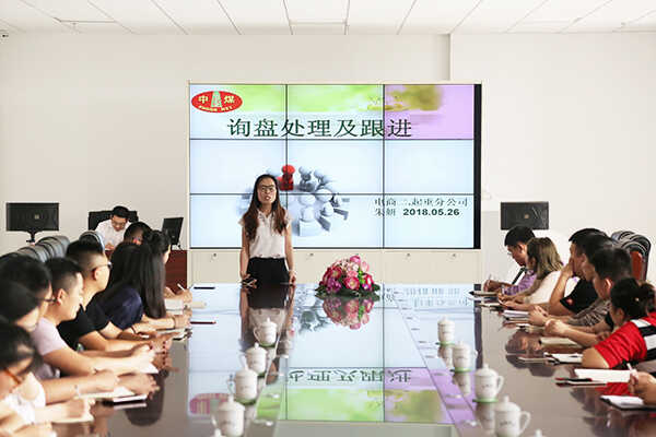 培训课由山东中煤集团电子商务团队业务经理翟玉成、朱妍妍担任主讲嘉宾。课上,翟经理从销售沟通技巧、销售心态等几方面与大家共同分享了经验做法,他就工作中经常遇到的相关问题分别进行了案例分析与讨论,并针对相关问题提出解决办法。随后,朱经理从如何筛选询盘、回询盘技巧、询盘跟进方法、报价技巧等几方面为大家做了详细解析,整个课程内容丰富、针对性强,极大地提高了电商团队的整体业务沟通能力,大家纷纷表示受益良多。培训结束后,集团副总经理于璀作总结发言。