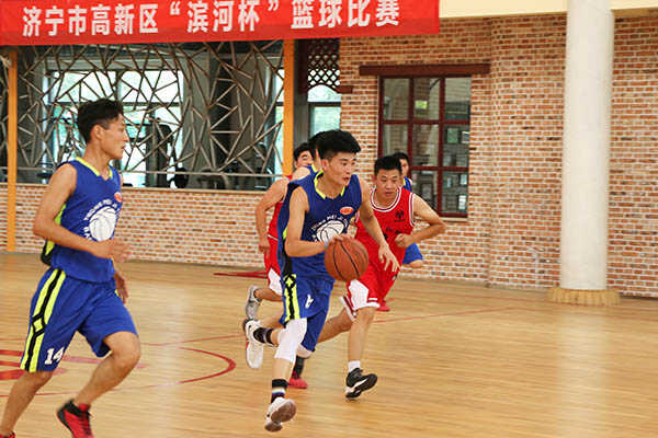 为迎接“七一”建党节的到来,丰富职工们的业余文化生活,营造团结健康、和谐向上的氛围,6月24日,由济宁高新区滨河科技园主办的“滨河杯篮球赛”在国能电力篮球馆举行。活动开幕式由高新区滨河科技园区书记杨银轩主持,济宁高新区投资促进局局长徐廷福为比赛致辞,山东国能集团董事长侯鲁之致欢迎词。高新区投资促进局副书记兰天、滨河科技园区副主任刘凯、滨河科技园投资促进部部长谢华亮以及参赛单位主要领导共同出席活动。中煤集团党委书记冯振营、常务副总经理韩勇、副总经理樊培功等领导到场为运动员们加油助威。