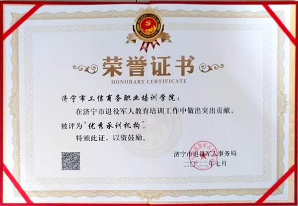 此次济宁市工信商务职业培训学院被评为济宁市退役军人教育培训优秀承训机构,副院长王曼的《退役军人心理调试和职业化素养》课程被评为济宁市退役军人教育培训优秀课程二等奖,高级讲师吕衍慧的《网络营销》教案被评为济宁市退役军人教育培训优秀教案三等奖。这不仅是对我学院退役军人培训工作的高度肯定,更是一种鼓励和鞭策,下一步,集团旗下工信商务培训学院将加大退役军人创业就业培训力度,根据现代科学技术发展趋势、地方经济社会发展需求以及退役军人自身特点设置更优质的专业培训方案,积极探索退役军人职业技能培训新模式,创新教学模块,优化实训模式,同时将学院的特色、重点课程与退役军人技能培训资源有机结合,建立起全覆盖的优质高效的教育培训体系,努力将济宁市工信商务职业培训学院打造成为“四位一体”的退役军人就业创业服务主阵地,为我市退役军人就业创业工作贡献力量!