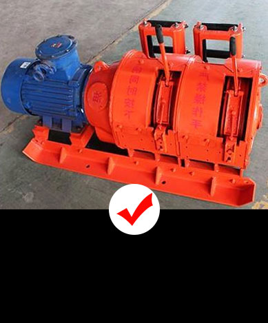 2JPB-7.5耙矿绞车工作原理:电机起动后,通过齿轮和两级减速,带动主轴转动,再通过齿轮带动两个行星齿轮减速器。当内齿轮未被刹住时,可以自由转动,主副卷筒在耙斗和钢丝绳阴力作用下都不转,如按下右下操纵手把,使右边内齿轮刹住,则与之相应的主卷筒在行星齿轮和三星架的带动下即旋转缠绳,托动耙矿。副卷筒则在钢丝绳的牵引下,旋转放绳。松开右手翅,按下左手把,刹住左边内齿轮,则与之相应的副卷筒在行星齿轮和三星架带动下旋转缠绳,拖动耙斗快速返回,主卷筒则在钢丝绳牵引下放绳,交替按下,松下左右手把,耙斗即作往复运动完成耙矿工作。